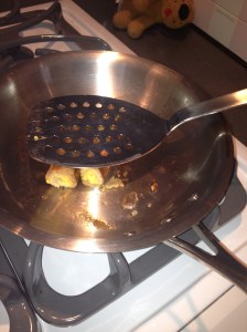 Melt a small amount of butter in a frying pan over medium heat and once melted place the sandwich roll seam side down to begin cooking. Press sandwich roll to secure seam.