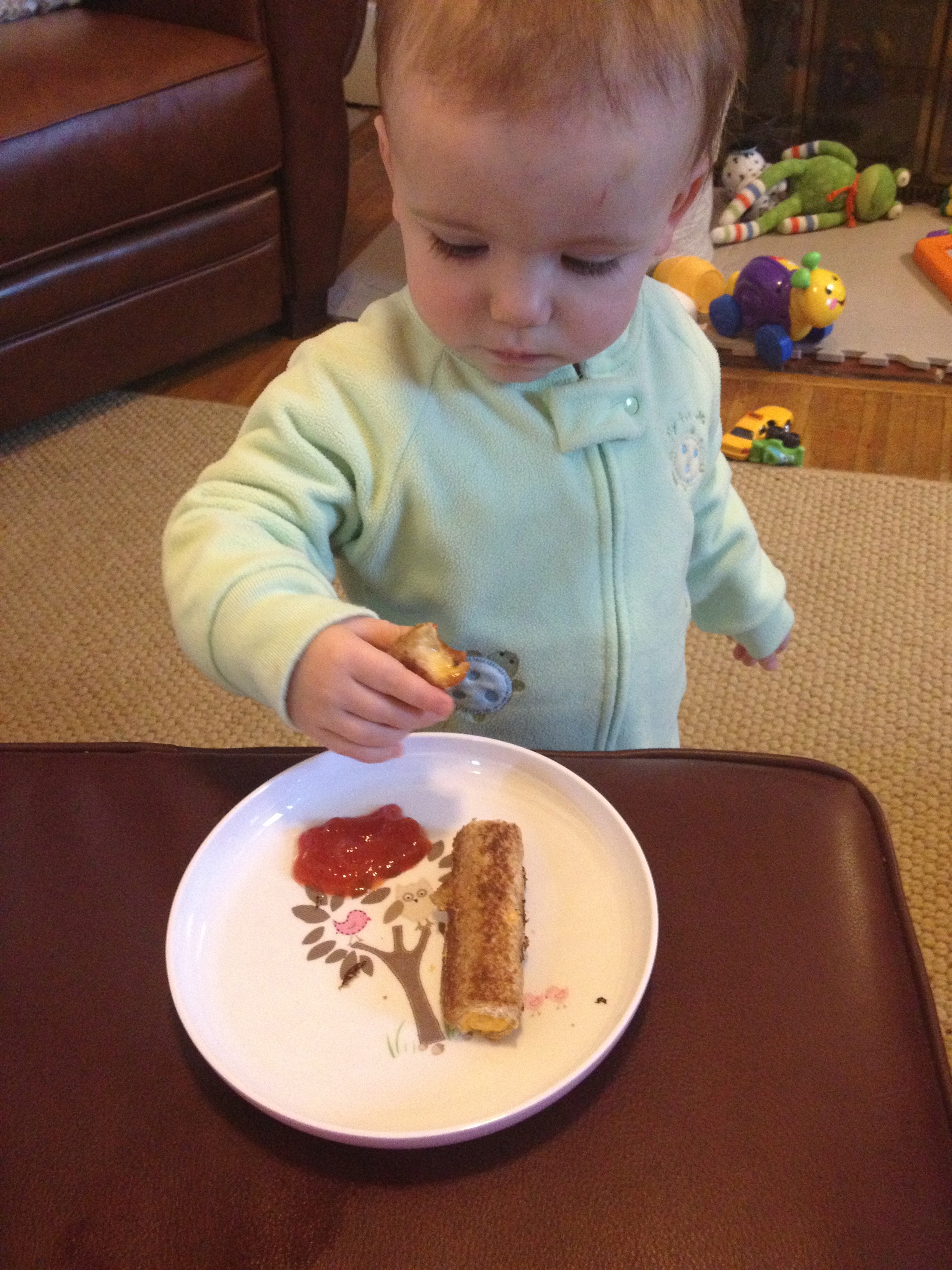 After seeing these Grilled Cheese Rolls (http://www.recipebyphoto.com/grilled-cheese-rolls/) I just had to try them for my little dipper! They would be the perfect size for her little fingers to pick up and dip, dip.