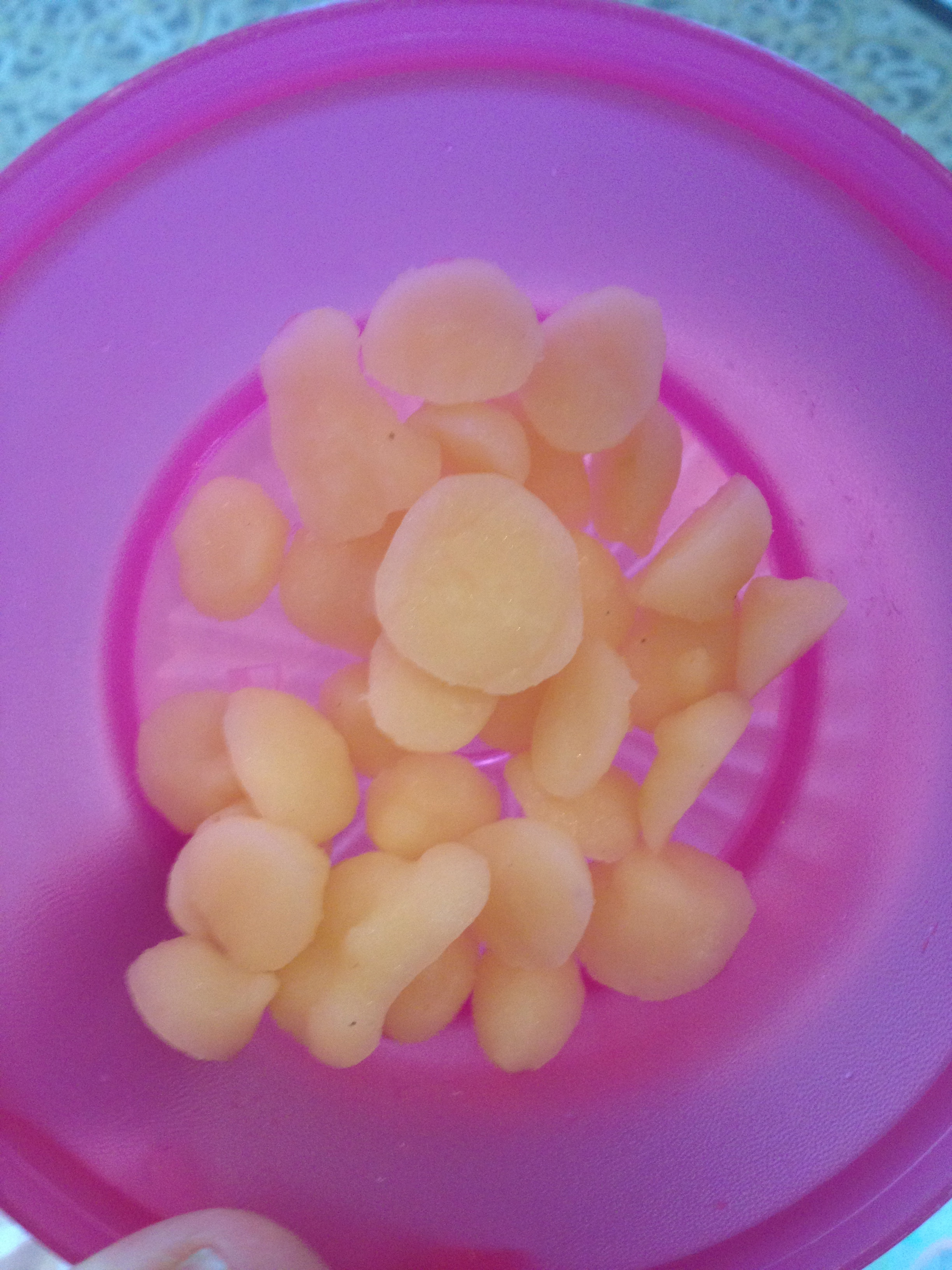 These apple sauce treats are freezing, so I’m sure they feel fabulous on Reagan’s sore gums!