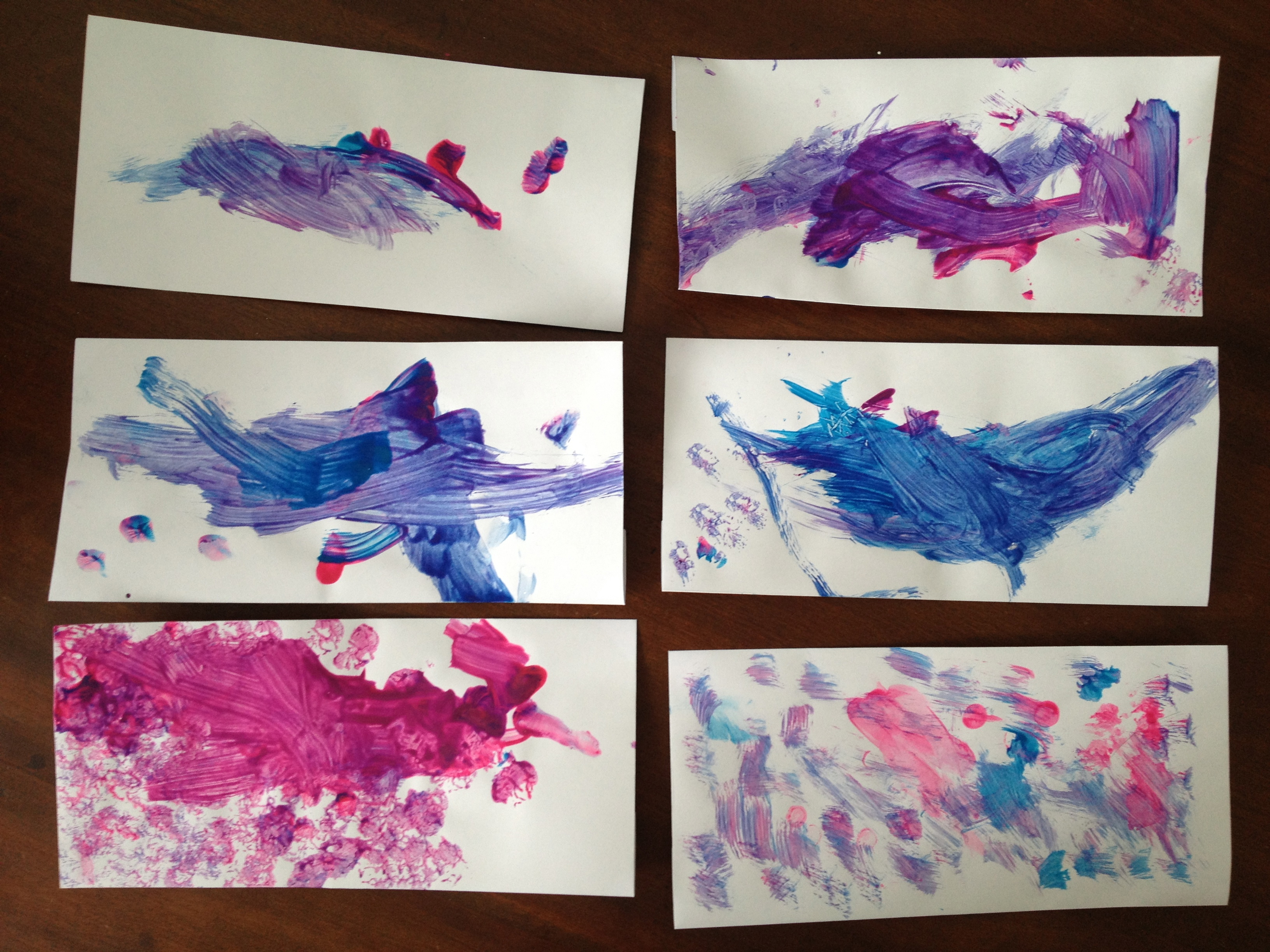 Reagan took one of her paintings that she made last week off of the fridge, held it up to me and said ‘paint mama paint’. Seriously, could she get any cuter? Without hesitation we headed to the basement and grabbed the needed materials. While setting up, I noticed the white envelopes that I had pulled out the night before to mail a letter to my cousin in Canada. What better way to show a little love to our favorite out-of-towners than custom made envelopes. As usual, I allowed Reagan to go to town and be as creative as she wanted. We talked about who we were going to send each envelope to and what we would put inside. This was a fantastic way to practice the names of the ones we love:)