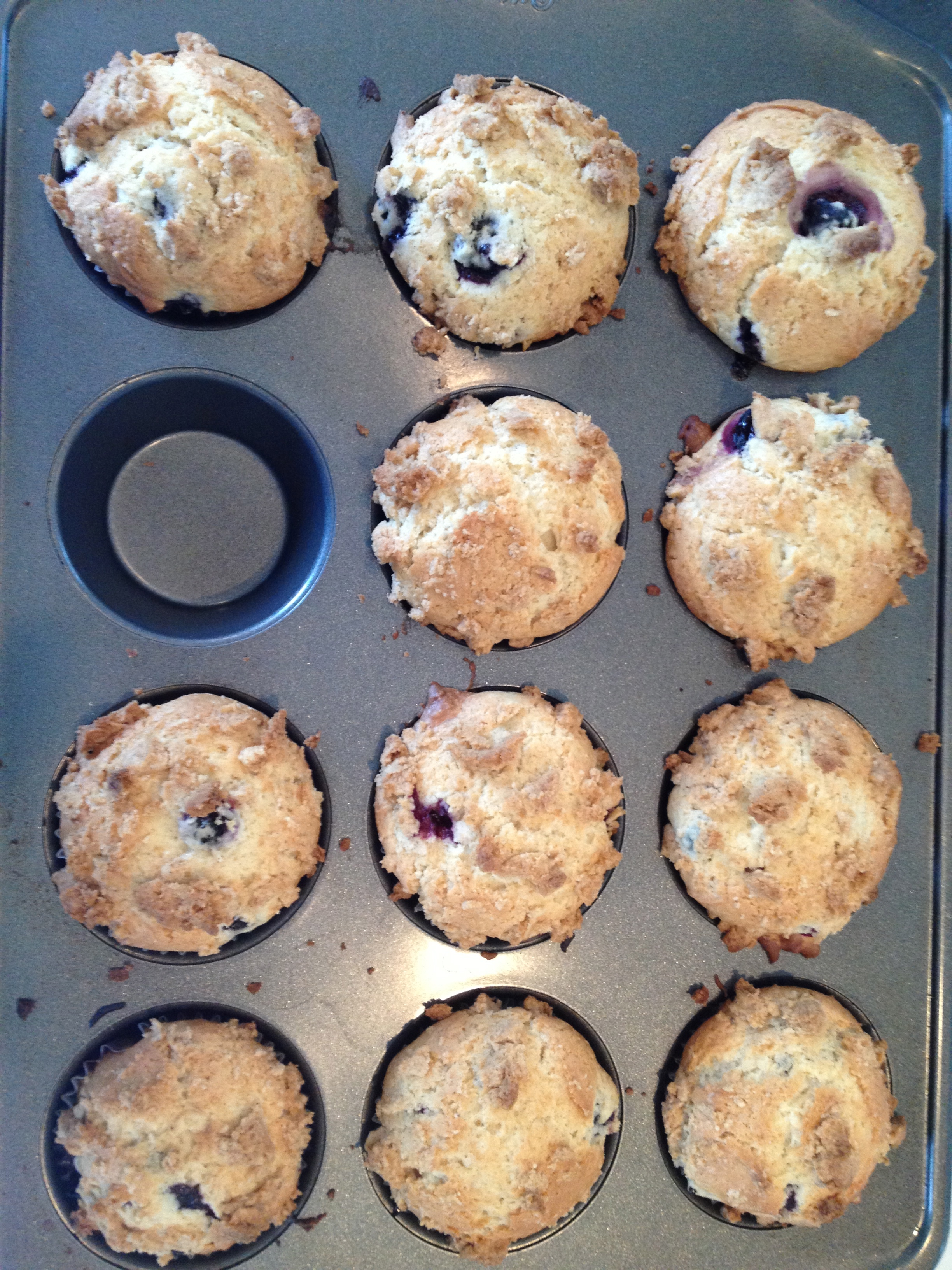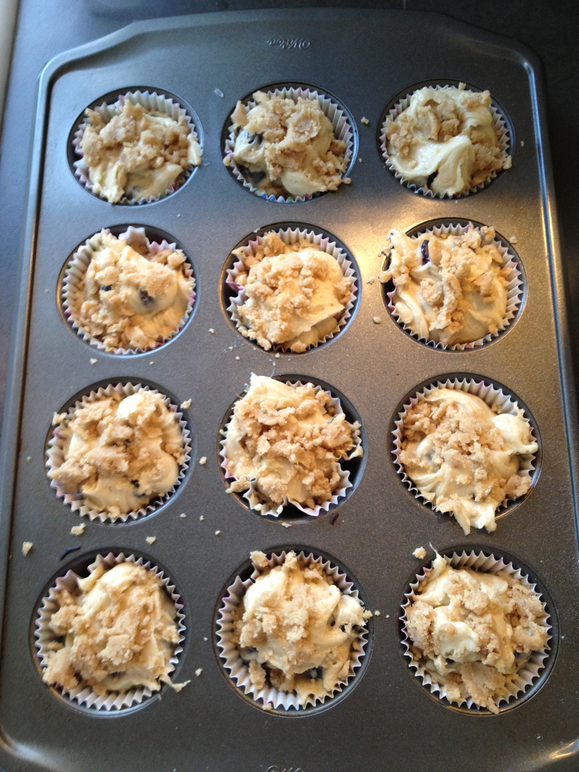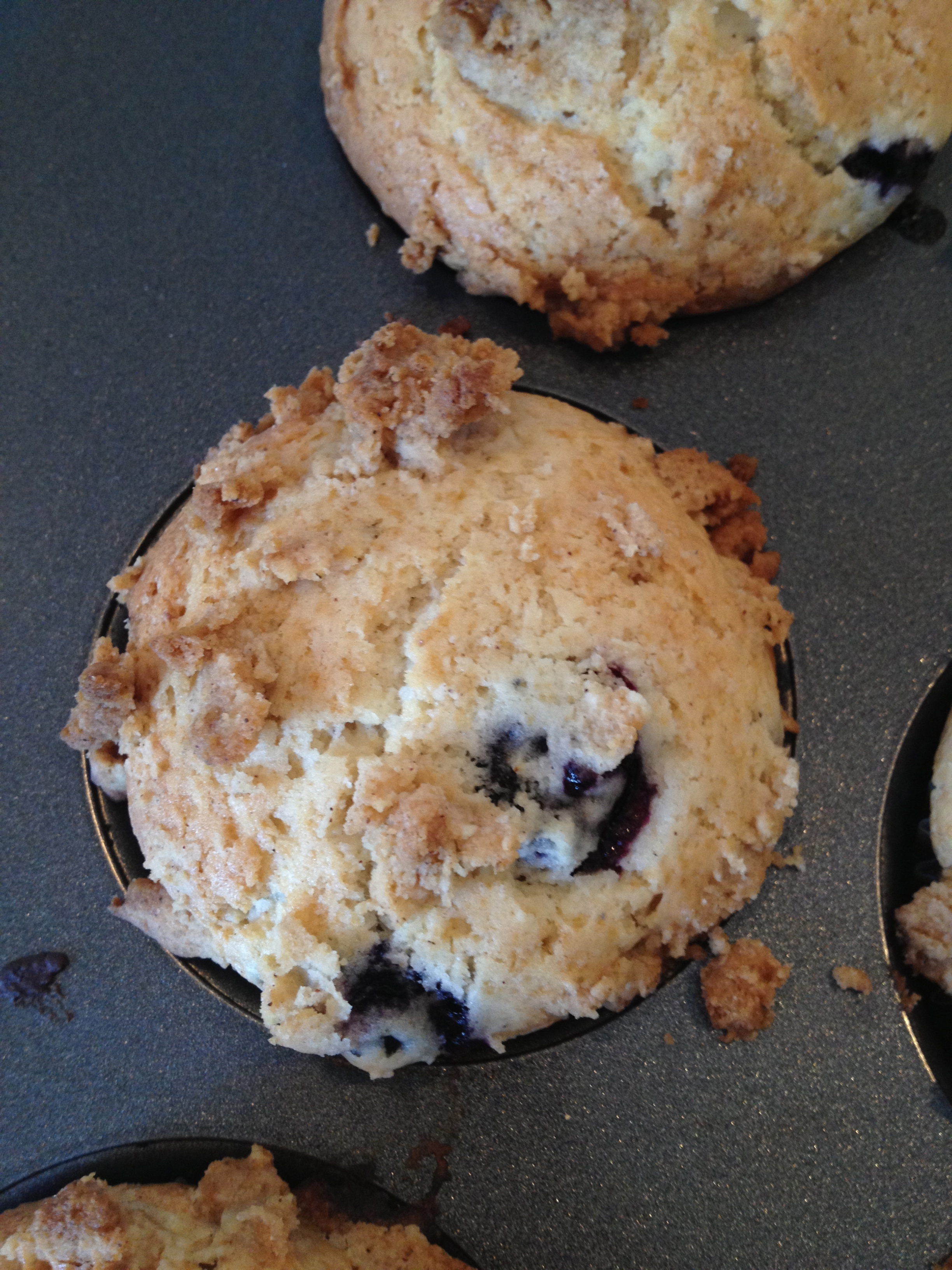 Martha has done it again! I made these delicious Blueberry Muffins that I found on her site and they are absolutely delicious! I didn’t take step by step photos, because Reagan was awake and there was just too many things happening at once. The next time around I will make a very small amount of the crumble topping. Even after generously topping all 12 muffins, I still had tons left over. You will need a had or stand mixer for this recipe, that is unless you have speedy wrists and can get the desired egg and sugar consistency without an electronic device.
