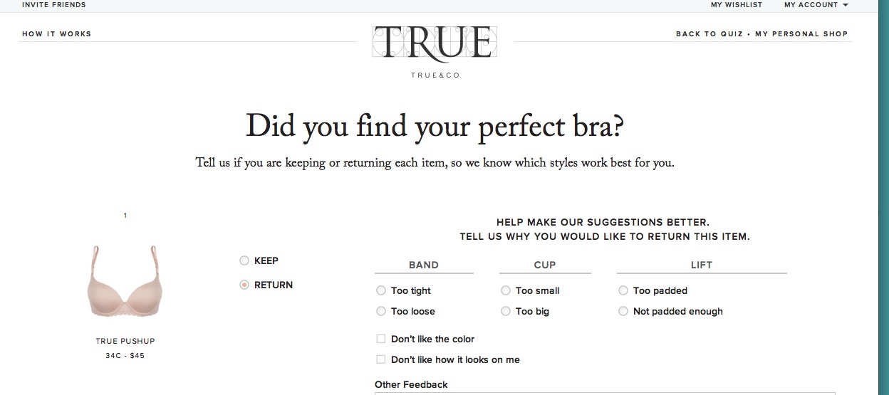 I’m absolutely in LOVE with the service that True&Co. provides. It takes everything out of shopping for a bra that I hate…