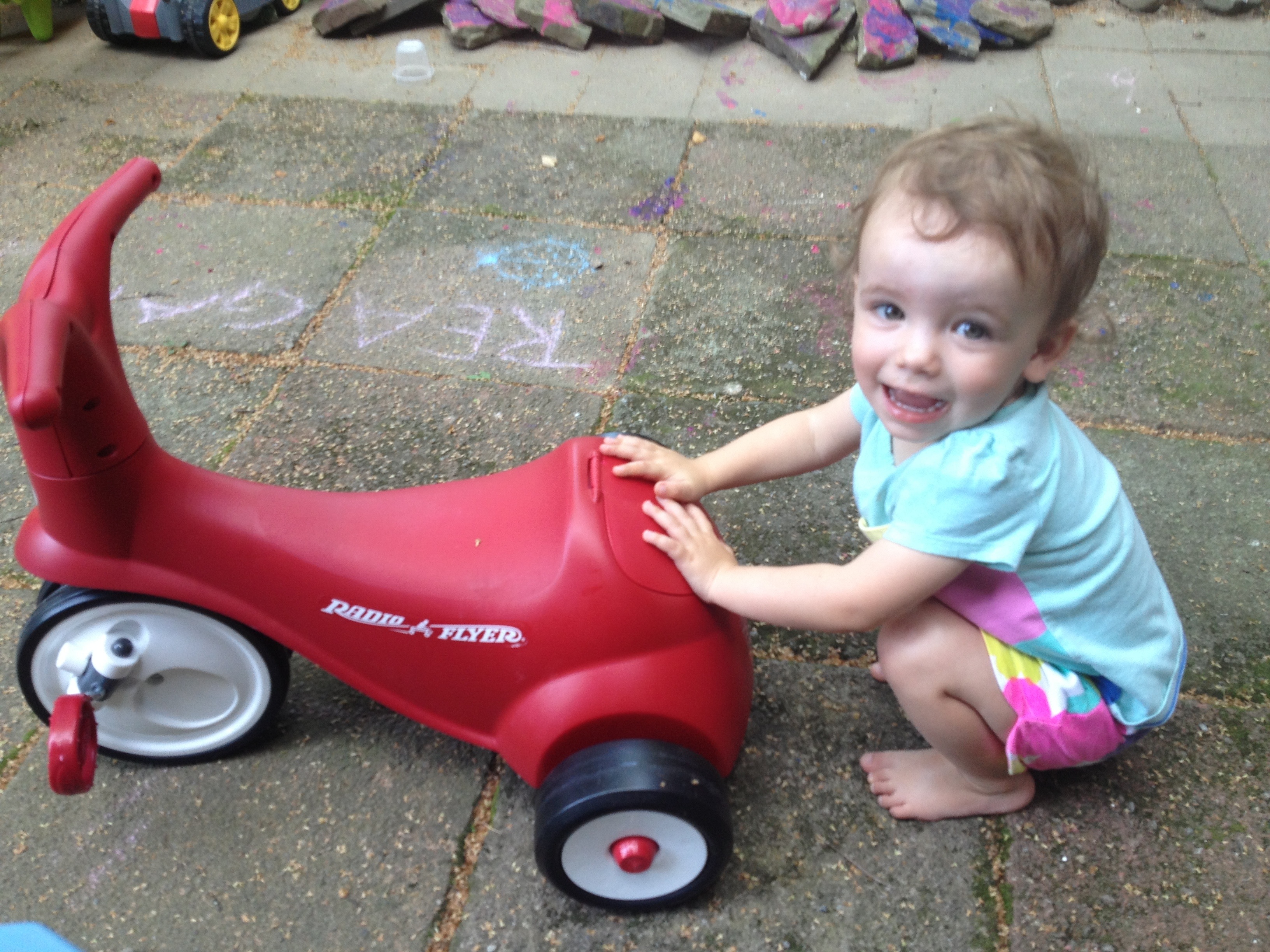 Reagan is absolutely loving her first Radio Flyer! Grammy brought this over the other day and Reagan has been a nonstop rider ever since. This plastic 2-in-1 bike is perfect for scooting along with your feet, when your not yet ready and able to pedal, and is simple and easy to pedal when you’re ready! The pedals easily fold when not in use. Reagan’s favorite part of this adorable bike is the spacious trunk, currently home to a rubber duck! I wasn’t able to find this bike on Radio Flyers website, but here’s a link to the bike at Walmart.