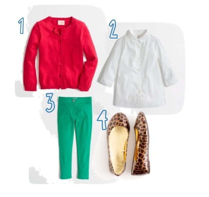 1. Casey Cardigan 2. Button Down Oxford Shirt 3. Gigi Pant 4. Patent Tortoise Ballet Flats
