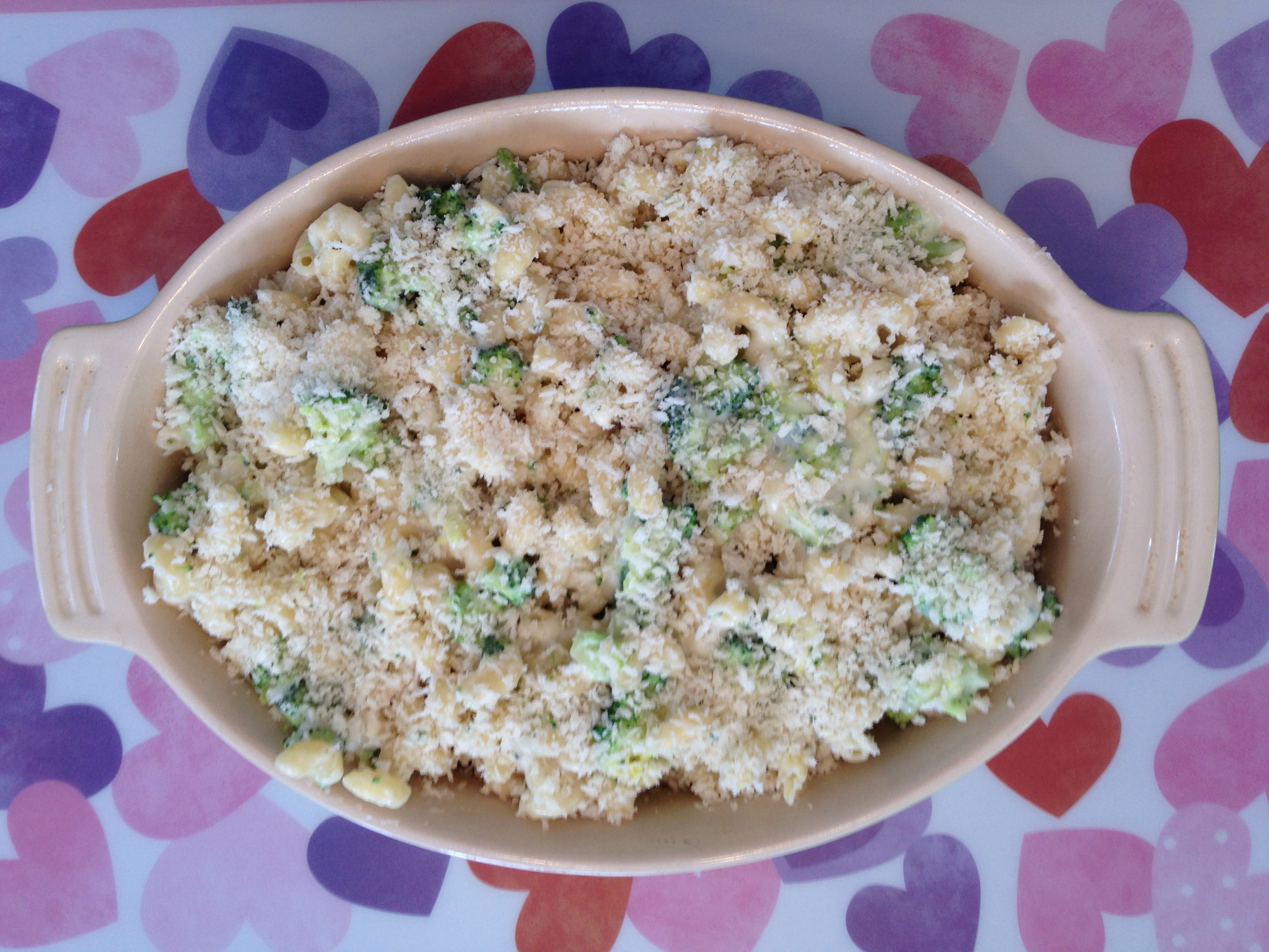 7. Toss together pasta, broccoli and cheese sauce. Transfer to prepared dish and sprinkle evenly with bread crumbs. Bake 20 minutes or until heated through.