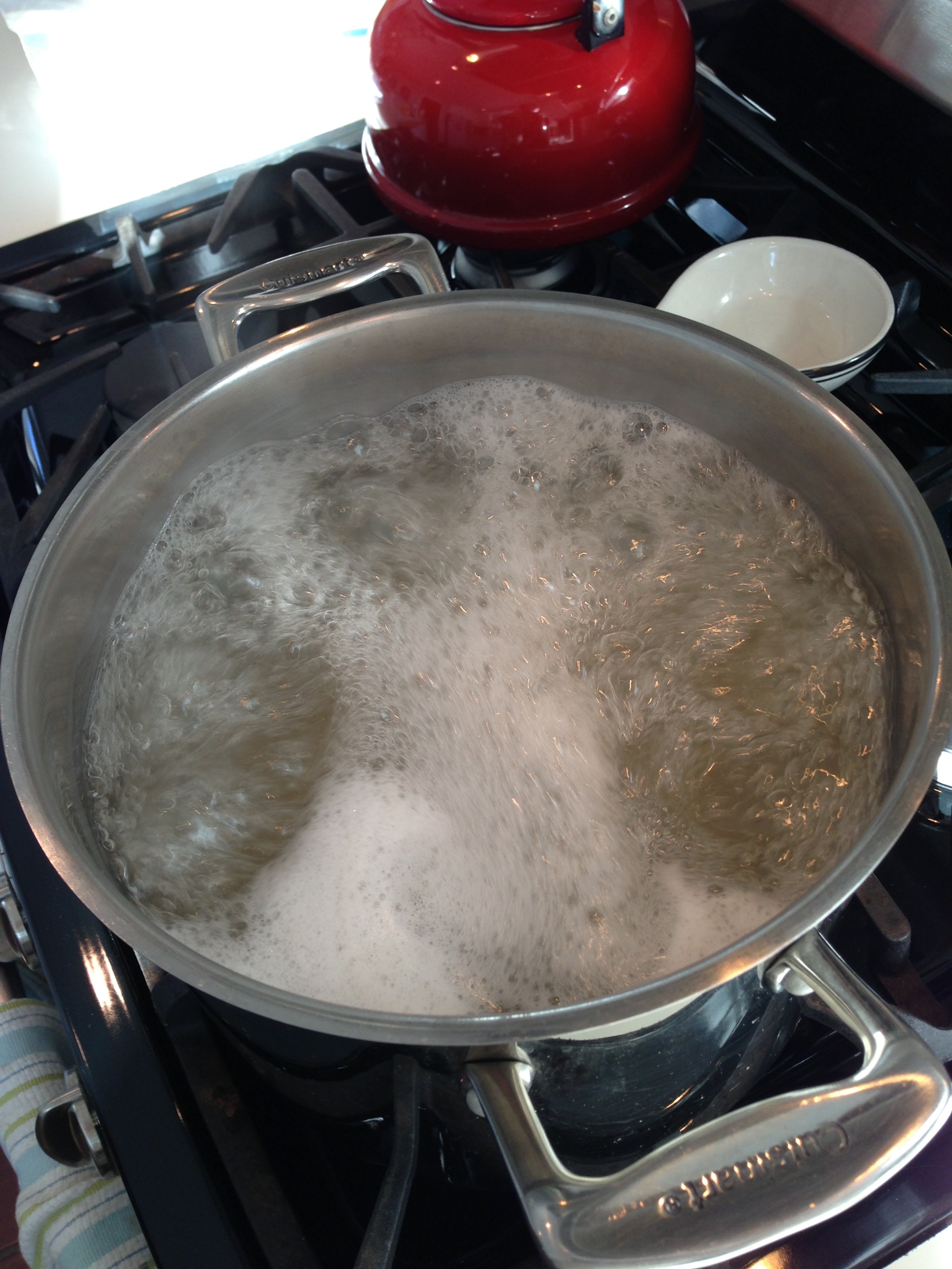 2. Bring a large pot of water to a boil and cook pasta until al dente.