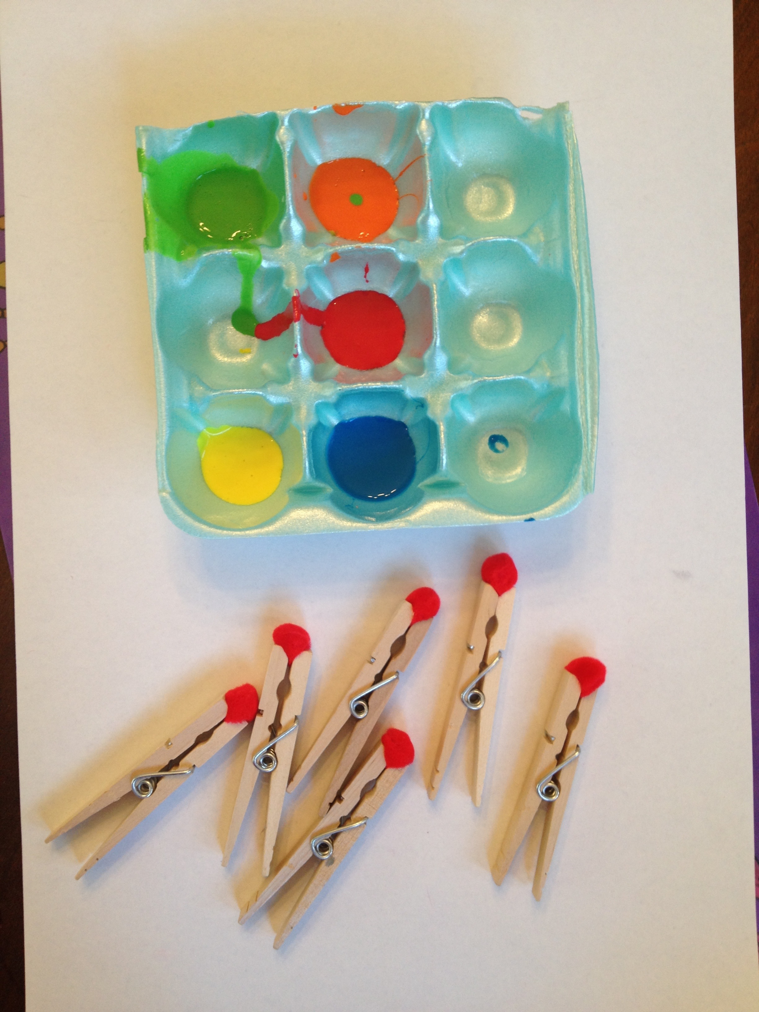 Pinch Pom Pom ball and/or cotton ball with clothes pin.