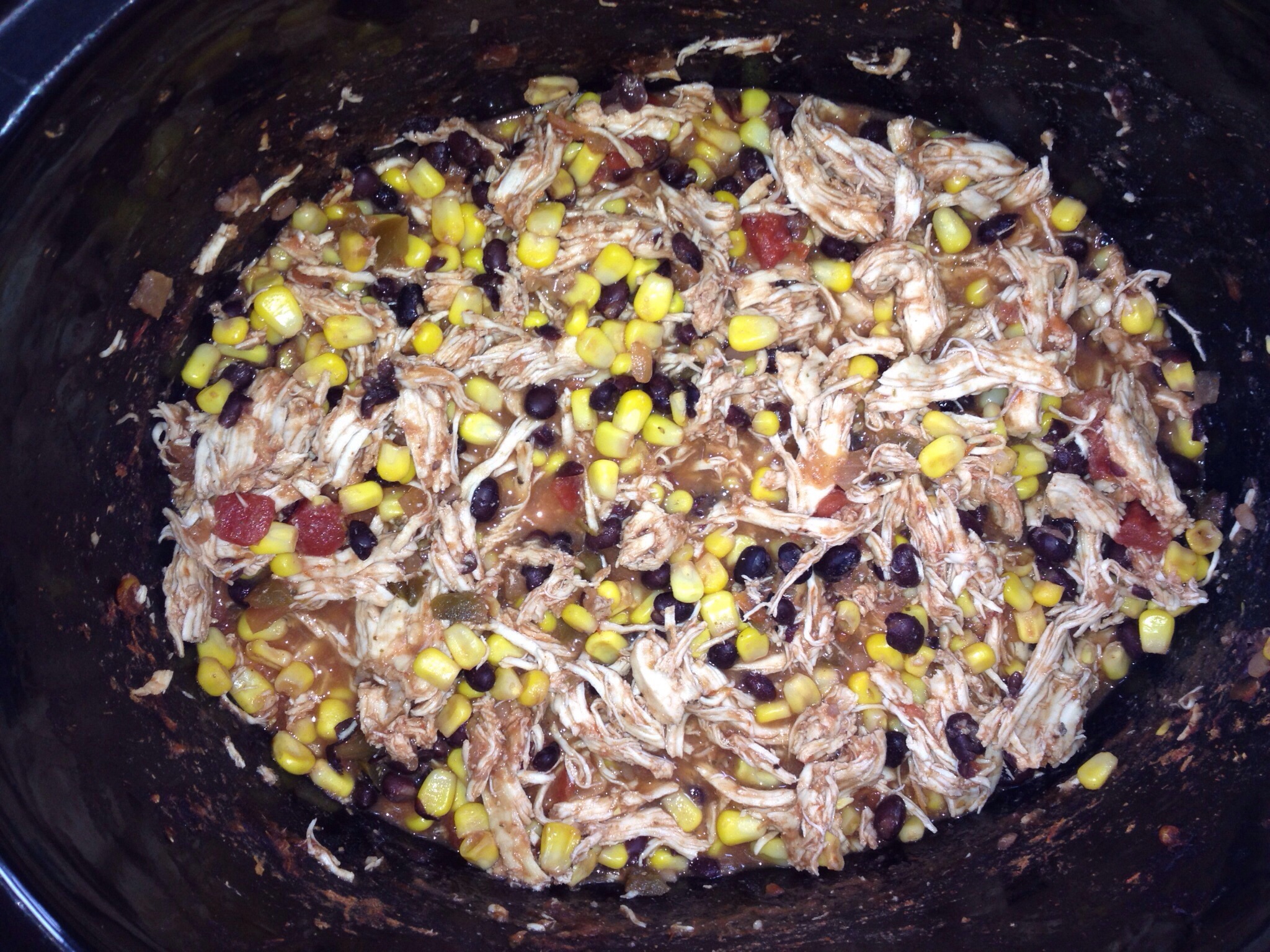 20140218-212209.jpgIn a slow cooker, add chicken and broth. Cook for two hours on high, then shred meat. My slow cooker has issues, so I cooked my frozen chicken for 1.5 hours on high. Discard liquid. Shred chicken and chop onion, celery and mushrooms. Season shredded meat with 1/4 tsp celery seed and 1/4 pepper and salt. Toss with buffalo sauce until meat is coated. Set aside.