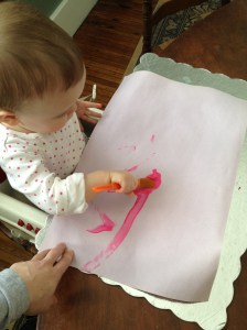 I decided that Reagan and I were going to make three HUG Valentine’s, one for Reagan’s dada, one for my mother-in-law, a.k.a Grammy and one for my father-in-law, a.k.a PaPa.