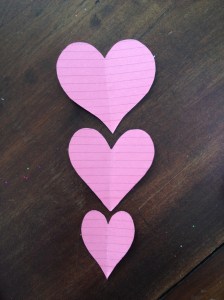 Cut three different sized hearts out of index cards. You will be tracing these hearts. I only ended up using one of the three sizes that I cut out.