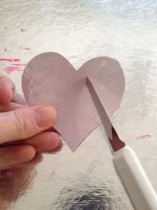 Using a sharp knife, cut two small slits (as wide as your ribbon) at the top of your heart.