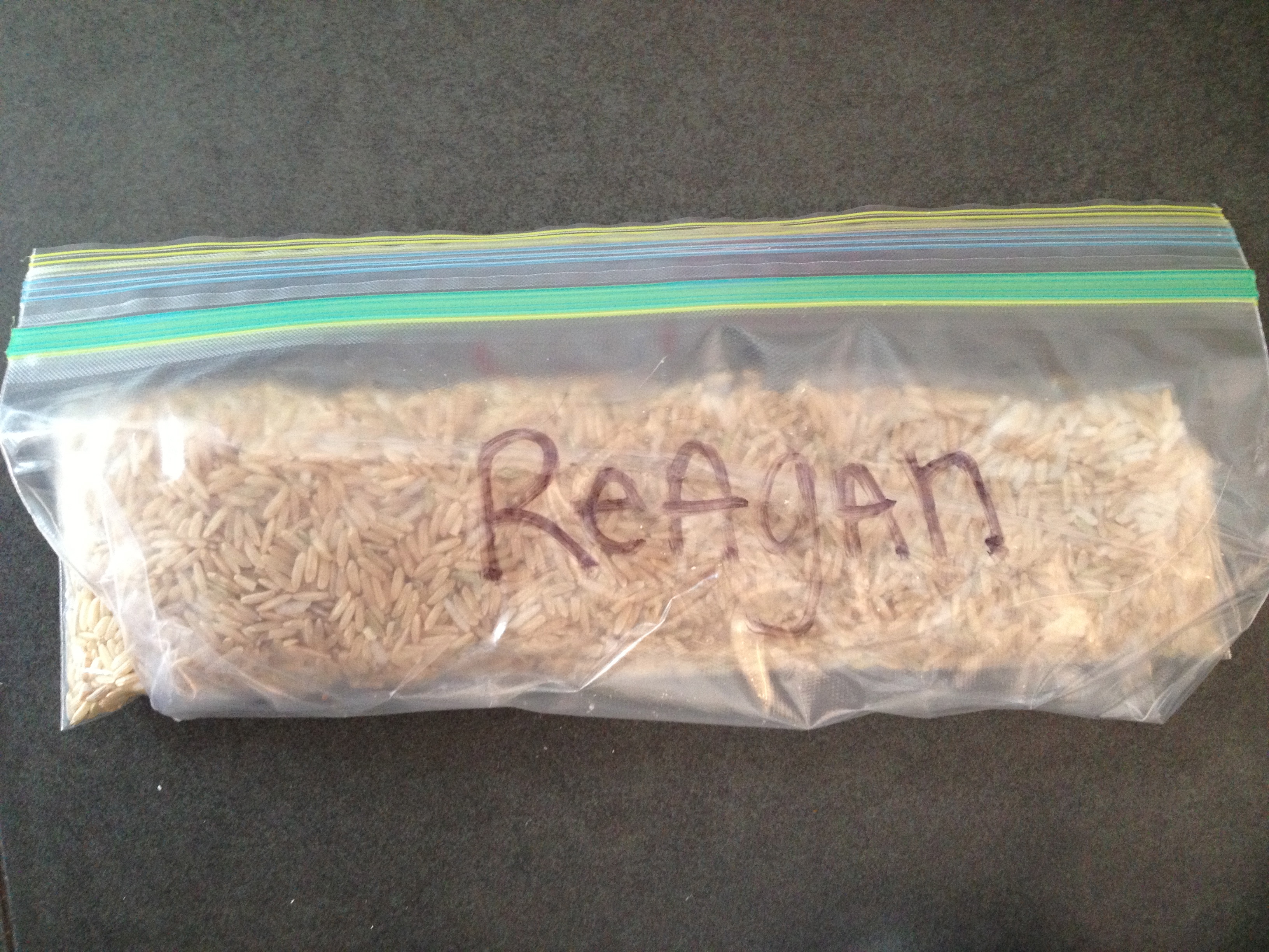 A few months ago I dyed, with food coloring, a box of uncooked ziti. I wouldn’t repeat the way that I dyed the ziti because if Reagan puts it into her mouth, which I know she will, the food coloring wipes off onto whatever the ziti touches after getting wet. I need to find a better way to dye the pasta and when I do, I will be sure to share it with you! Nevertheless, I’m continuing to use the pasta until it’s gone.