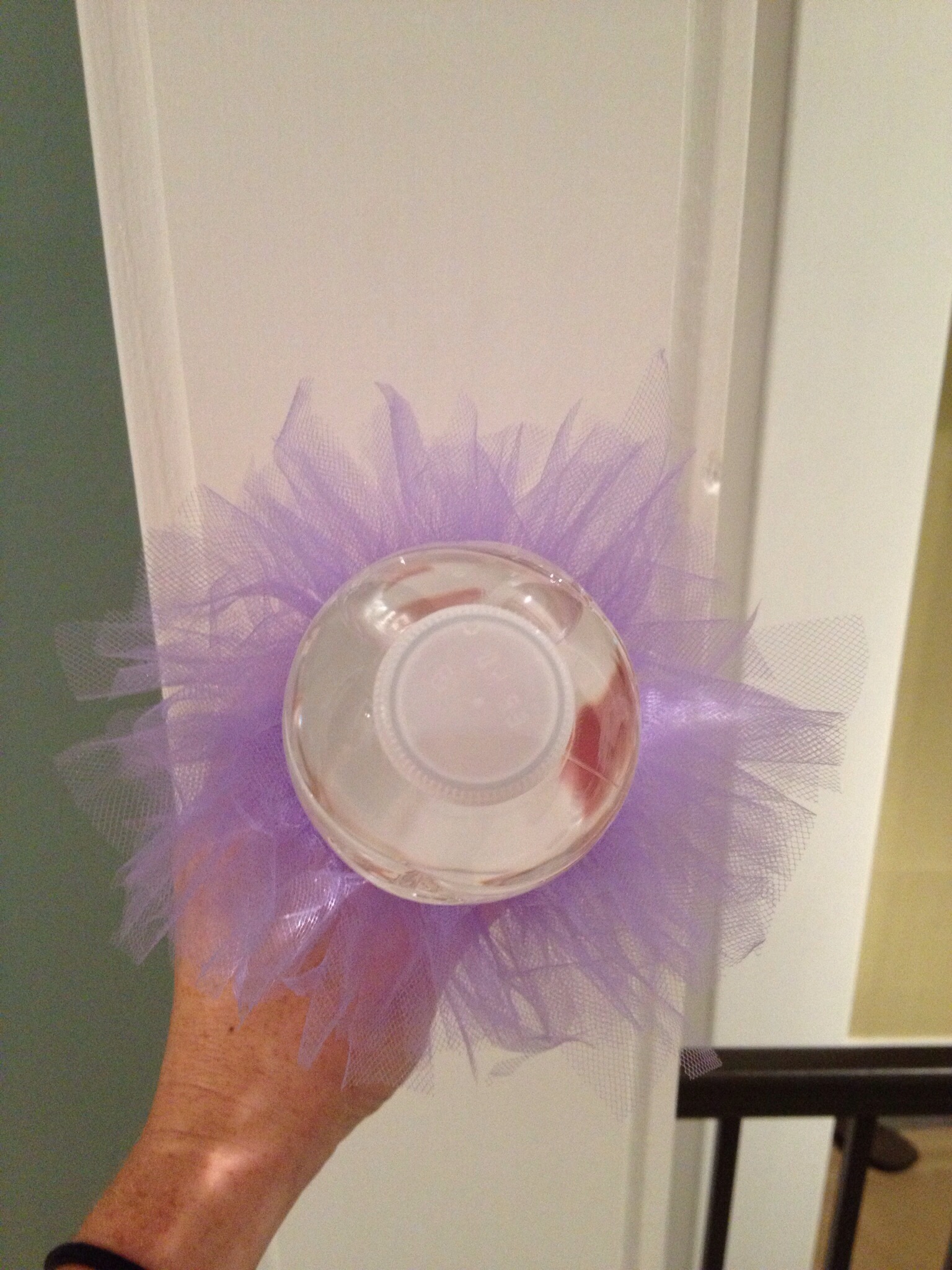 These tutus definitely gave me a run for my money, which is why I only ended up making six, instead of the intended 15. They are super cute, and were a huge hit, but my fingers weren’t very happy with the hundreds of small knots that they tied. I made these at night, while watching Pretty Little Liars. I have to admit that I’m addicted to what my husband calls a ‘teeny bopper’ show. But, it’s a step up from Caillou, which Reagan is currently obsessing over during the day.