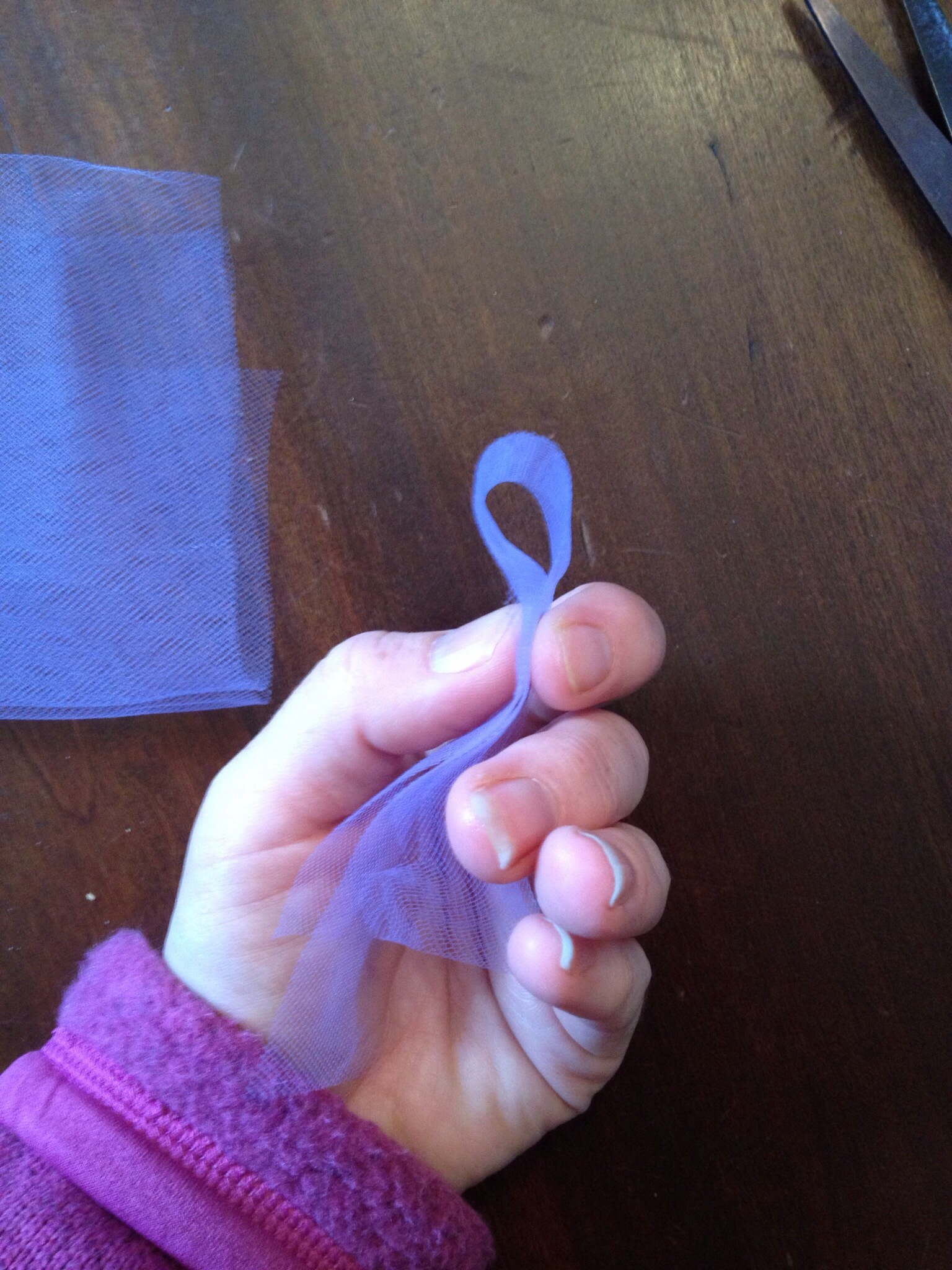 Your pieces will need to be cut at the tops of the loops; this is where your tule was folded.