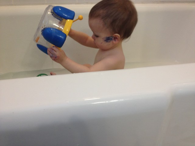Designate one clothes pinned Pom for each color, which probably won’t last for long- Reagan was mixing colors within the first few minutes.