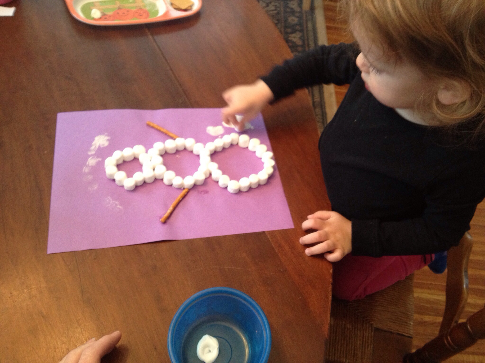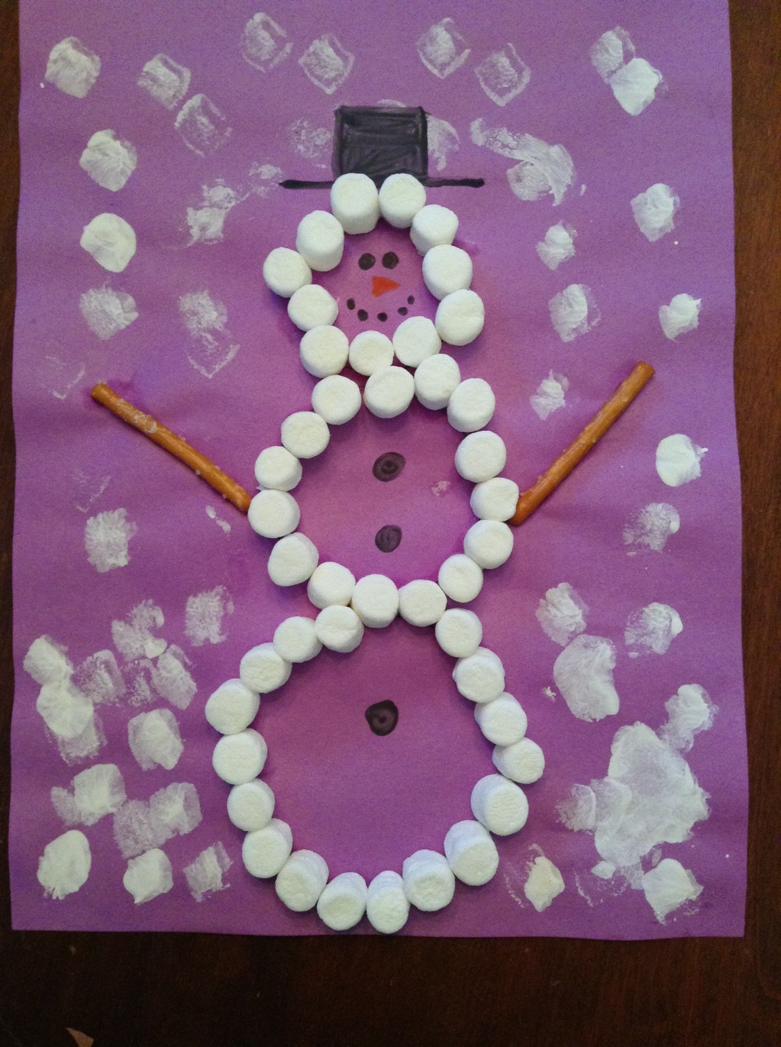 When completely dry; carefully peel the snowflakes off of the wax paper. I obviously wasn’t successful in peeling off each snowflake, but no snowflake is the same or perfect, so I we still used the ones that didn’t peel off perfectly.