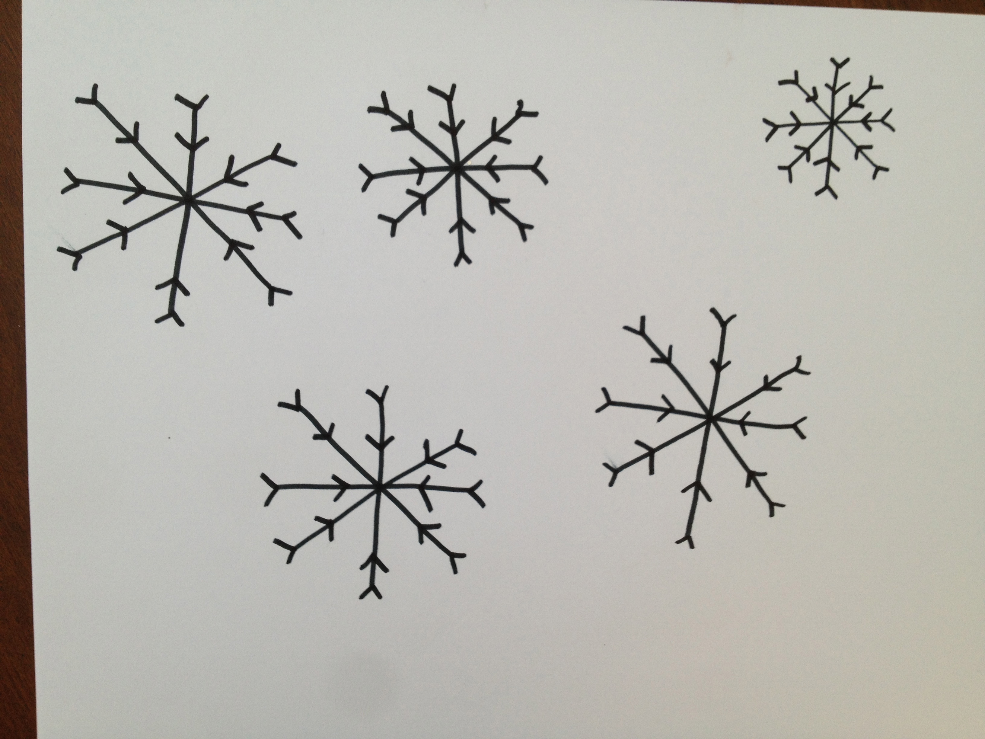Free hand draw as many snowflakes as you would like to make onto a piece of paper.
