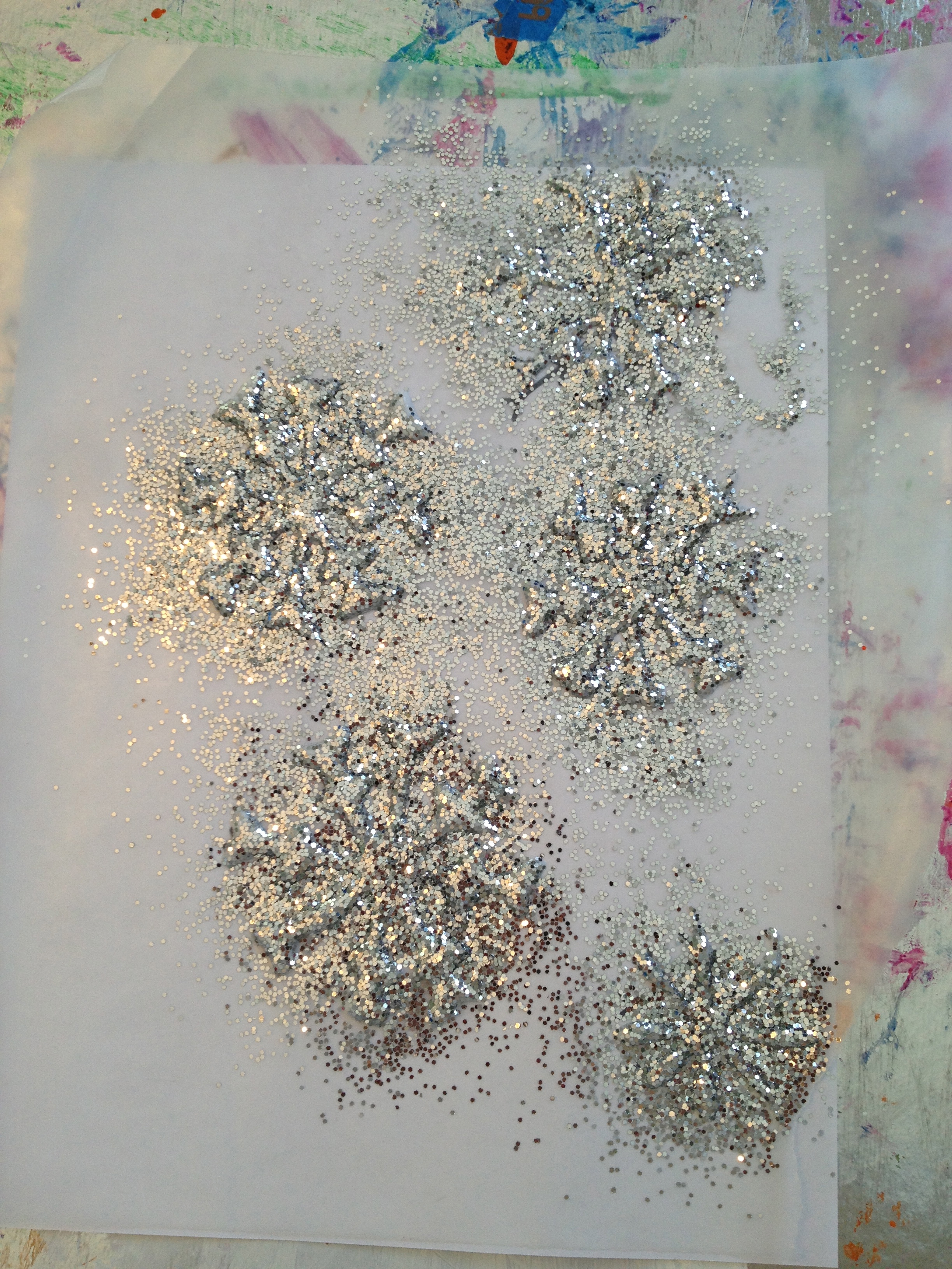 Cover snowflakes with glitter and leave to dry overnight.