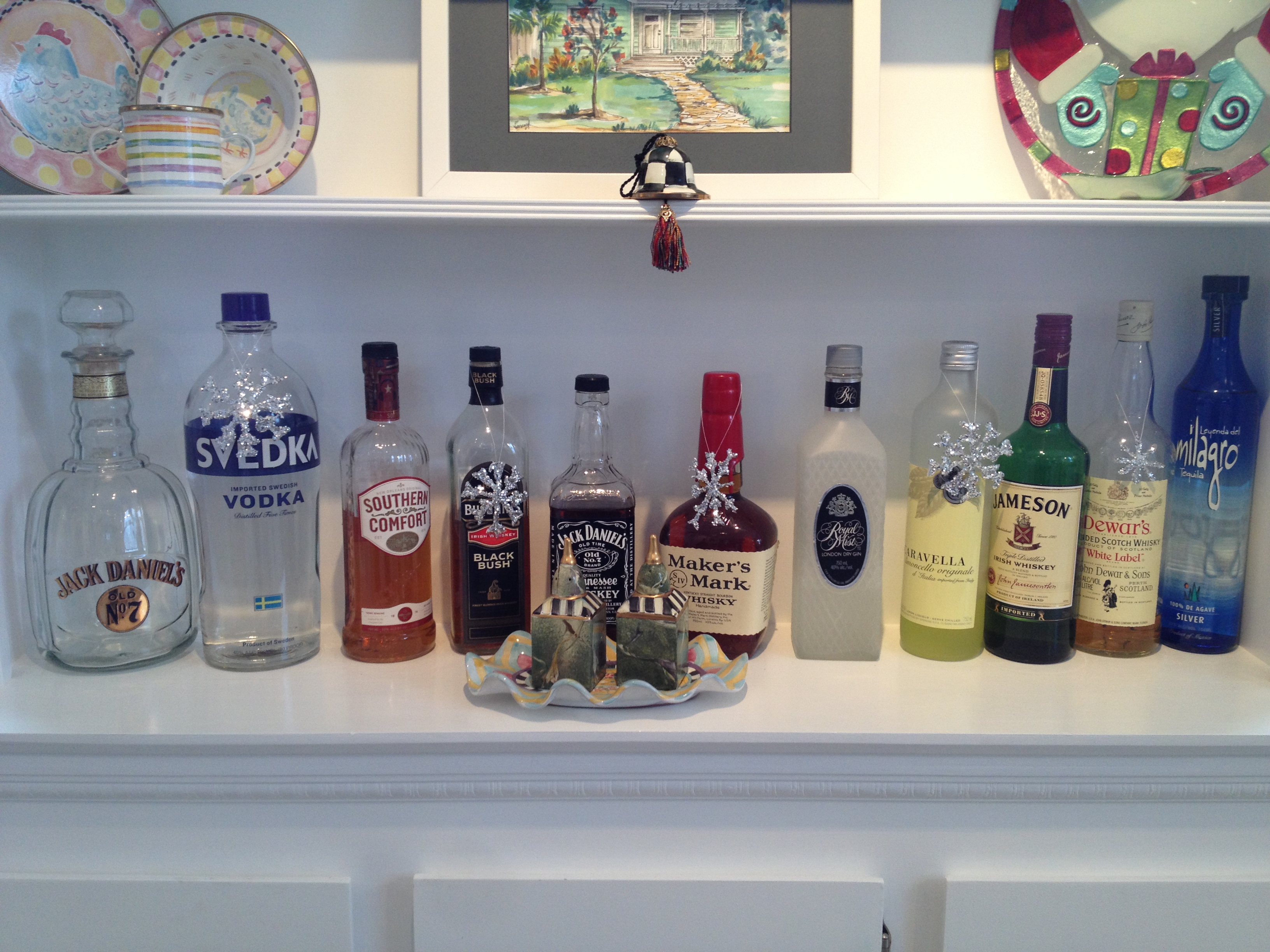 We used our snowflakes to decorate our bar in the the kitchen. The snowflakes add the perfect amount of sparkle to our kitchen!